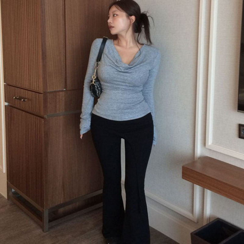 【東大門】時尚設計垂感修身上衣T恤 白/黑/灰
