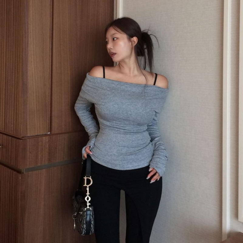 【東大門】時尚設計垂感修身上衣T恤 白/黑/灰 數量