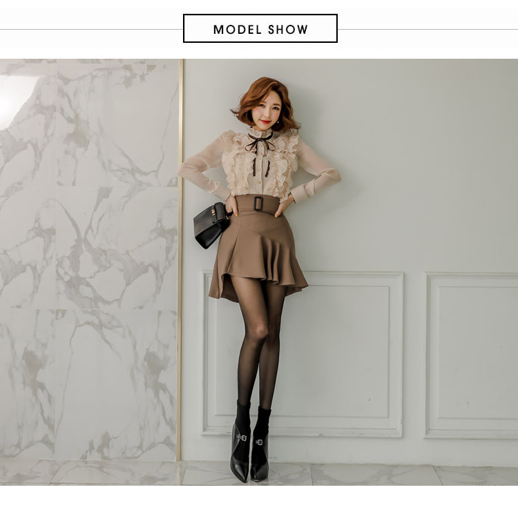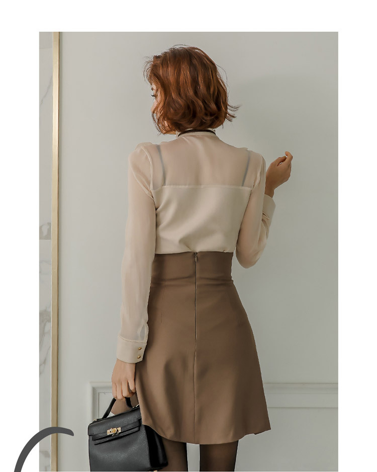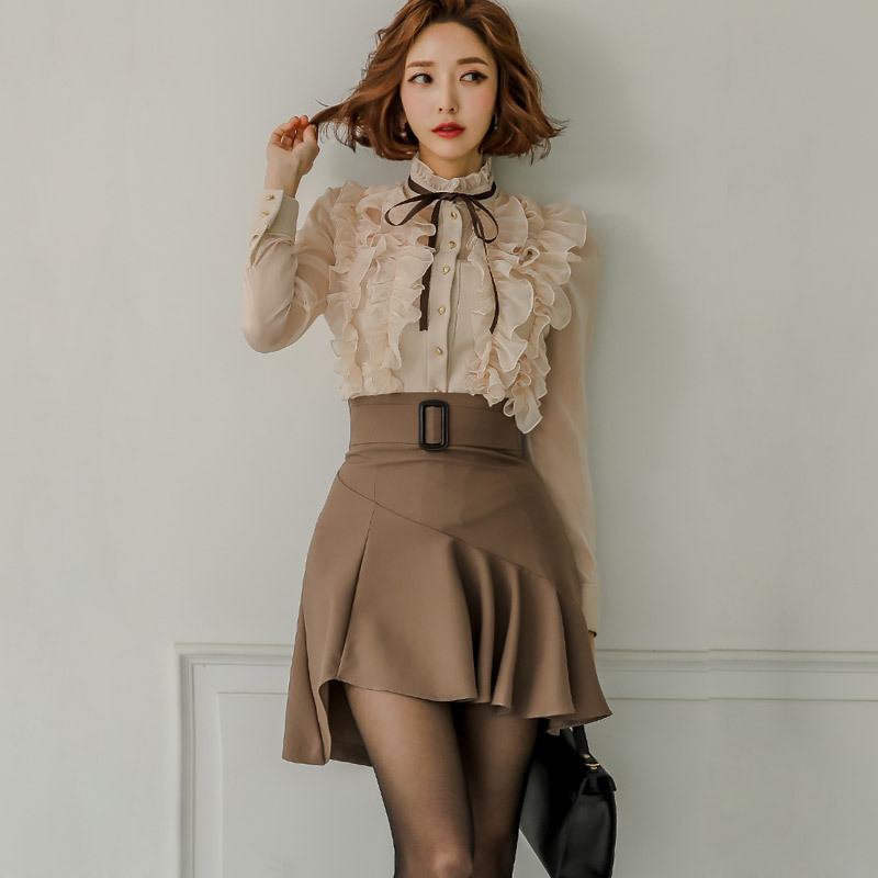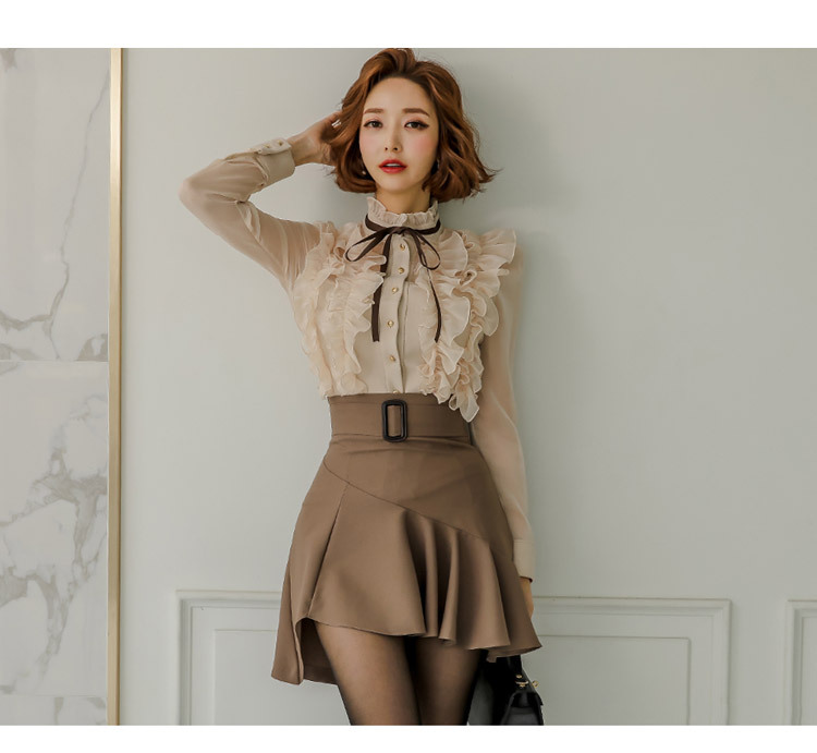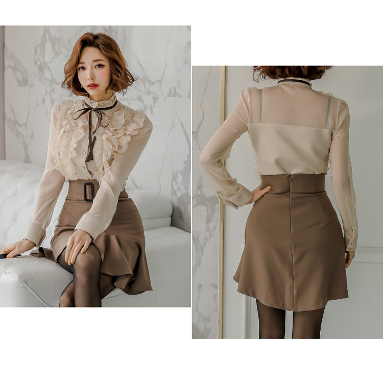 套裝2025秋季新品名媛氣質立領透視襯衫+荷葉邊半身裙兩件套 數量