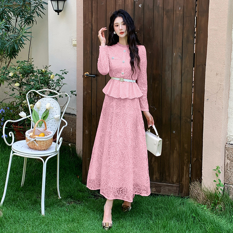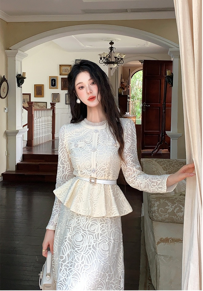 甜美小香風水溶性蕾絲套裝-三色 數量