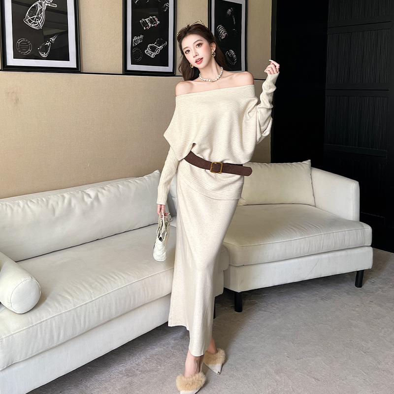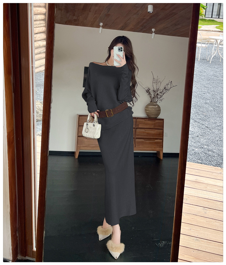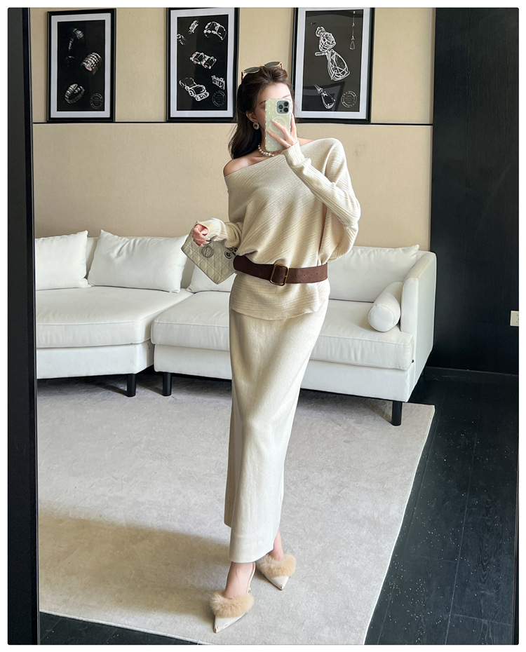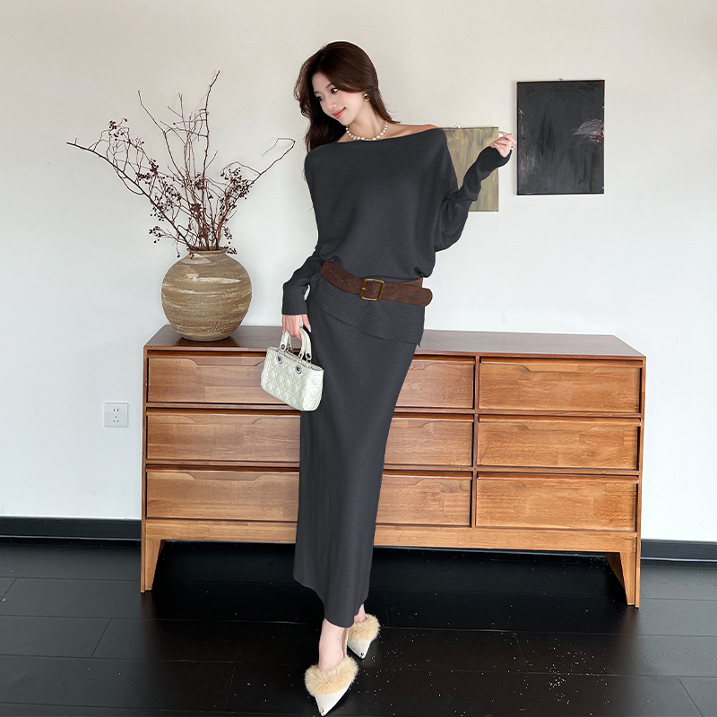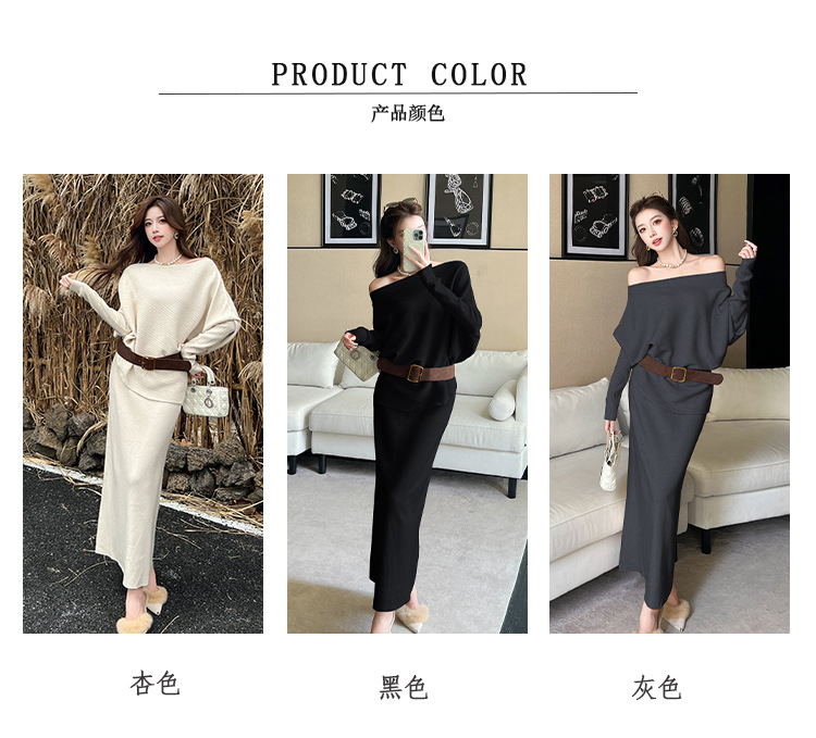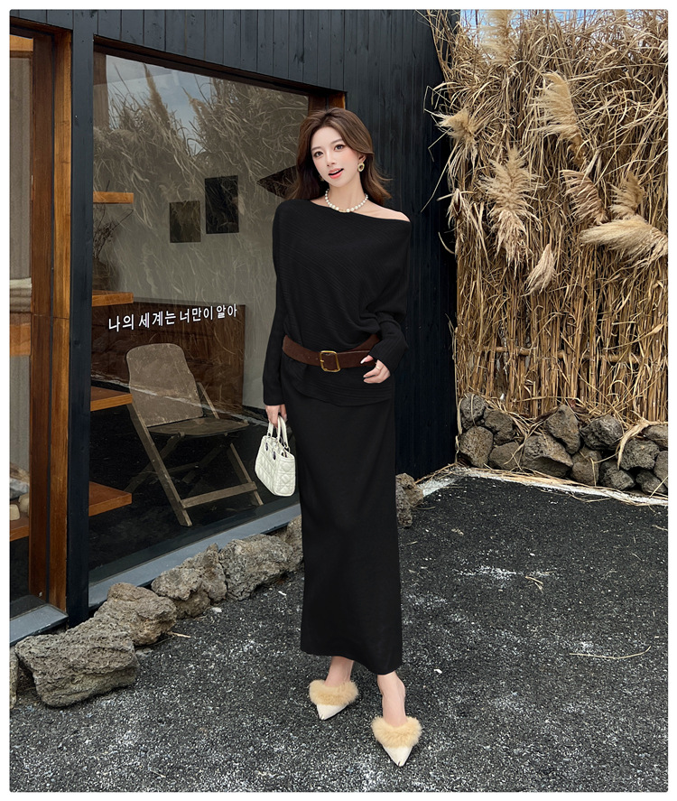 氣質時尚套裝2025秋冬新款寬鬆女裝針織衫鬆緊腰半身裙配腰帶 數量