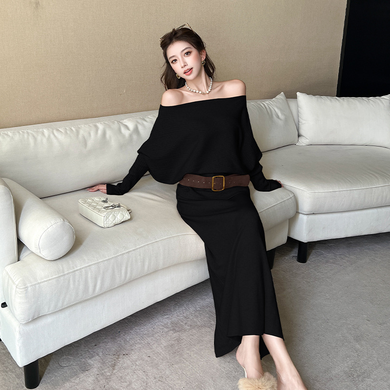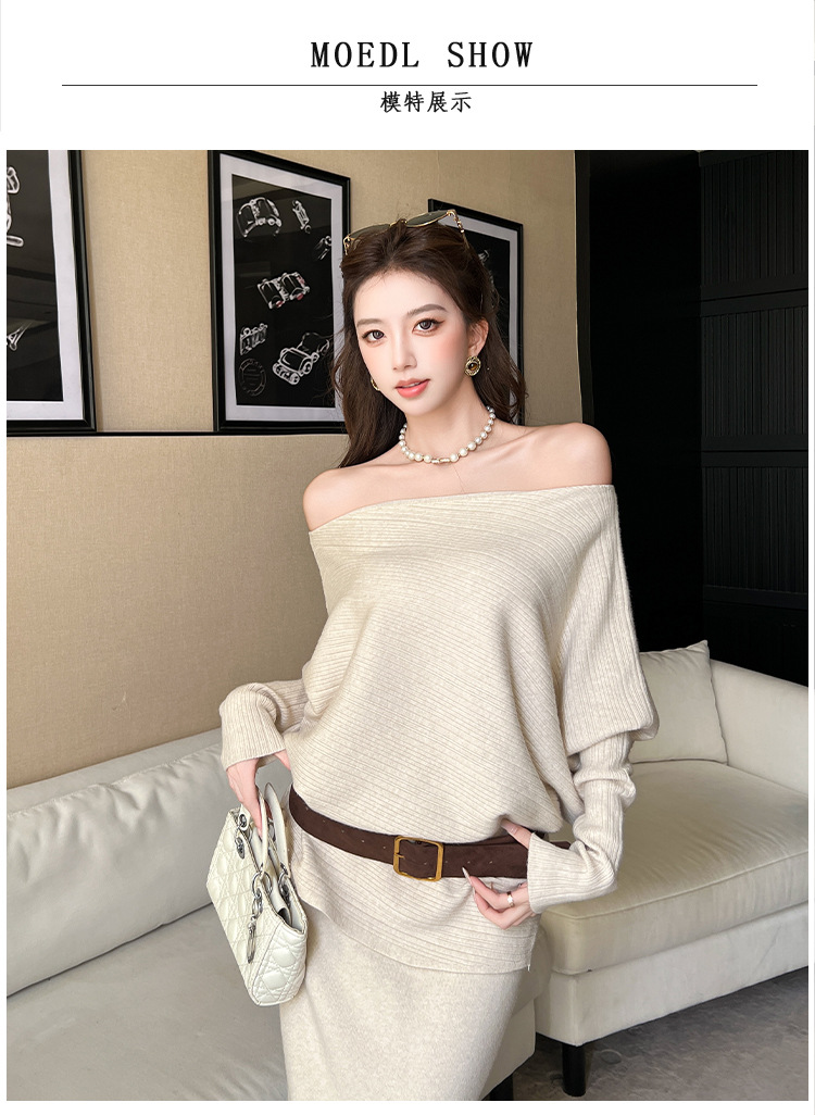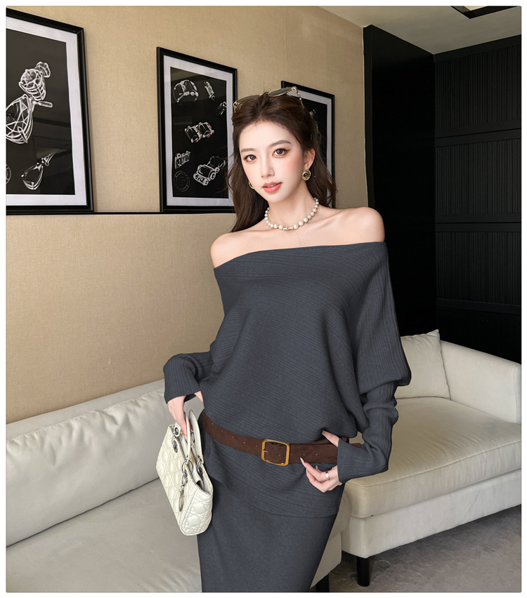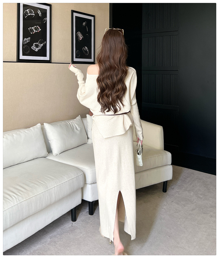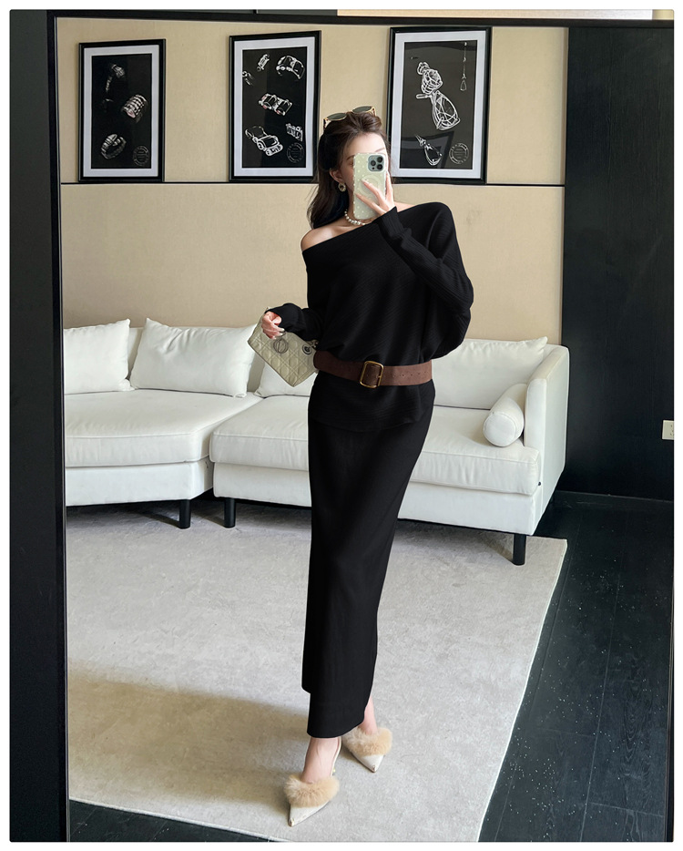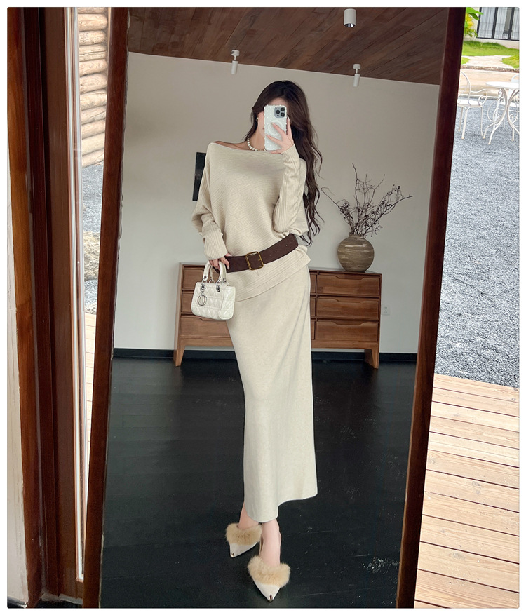 氣質時尚套裝2025秋冬新款寬鬆女裝針織衫鬆緊腰半身裙配腰帶 數量