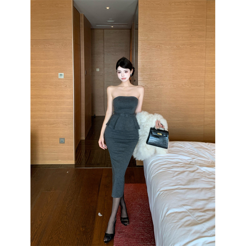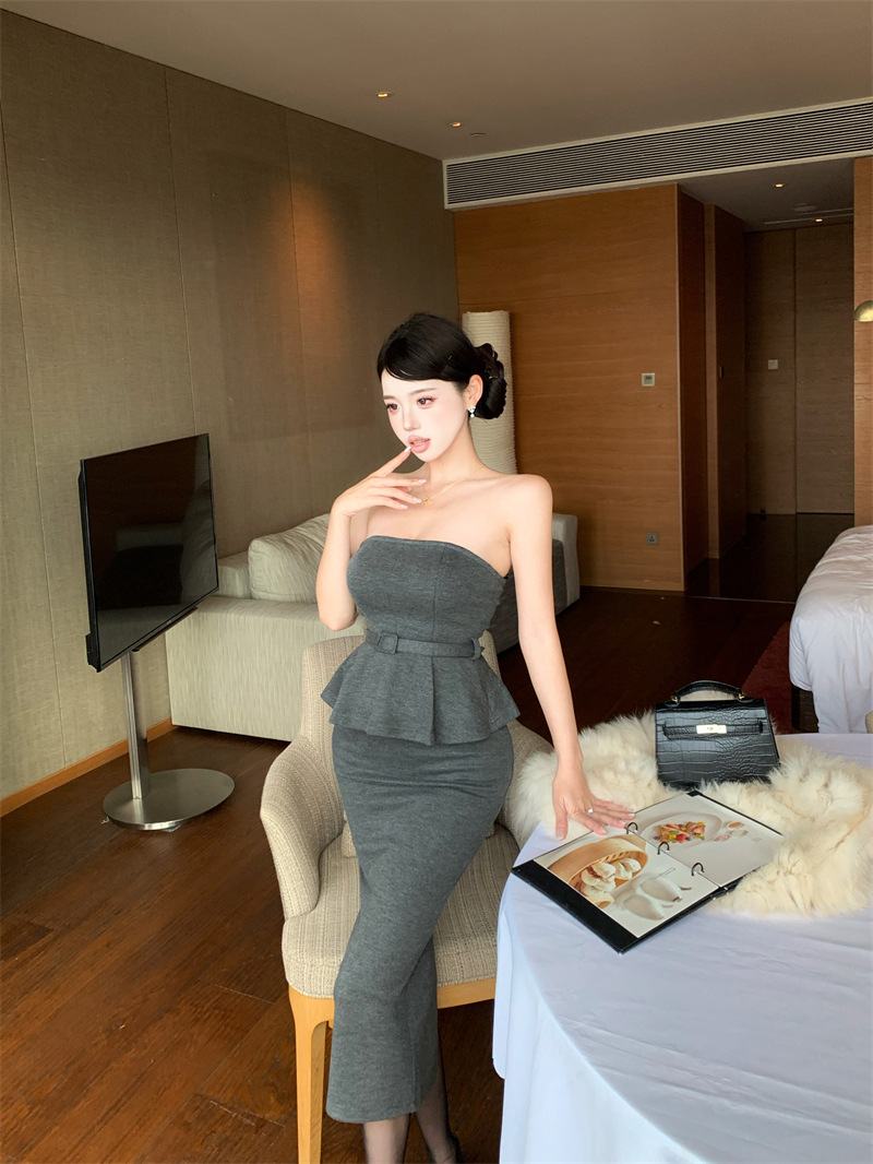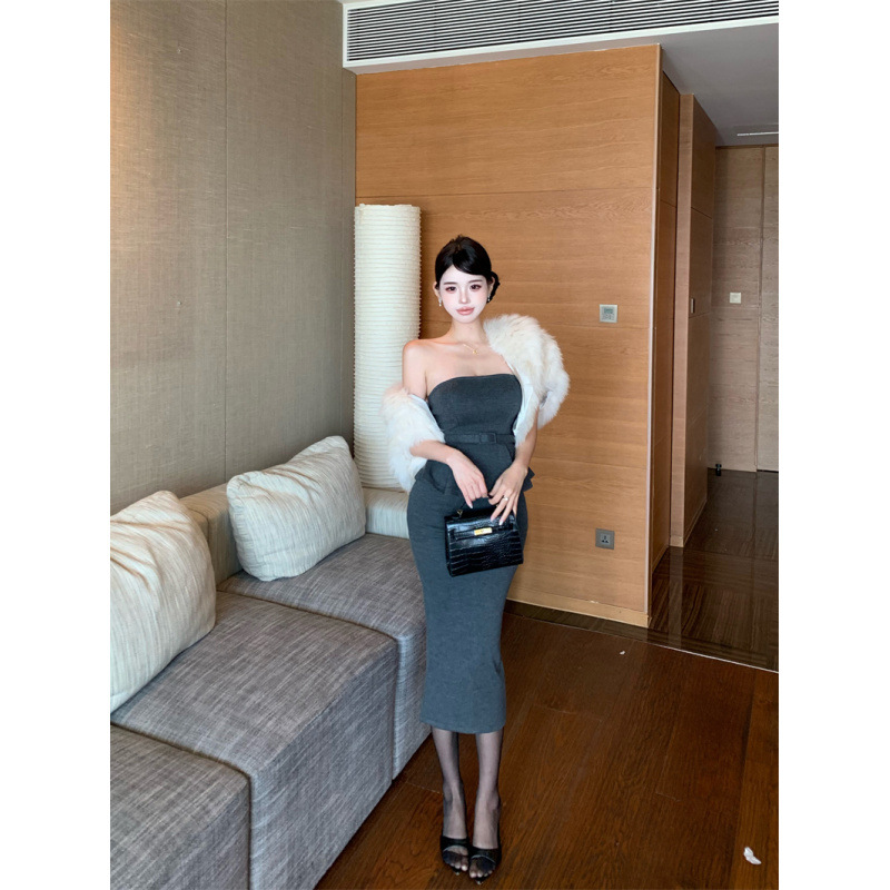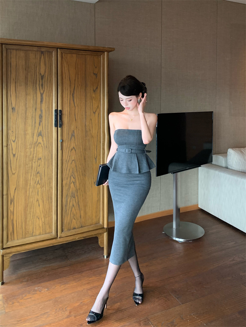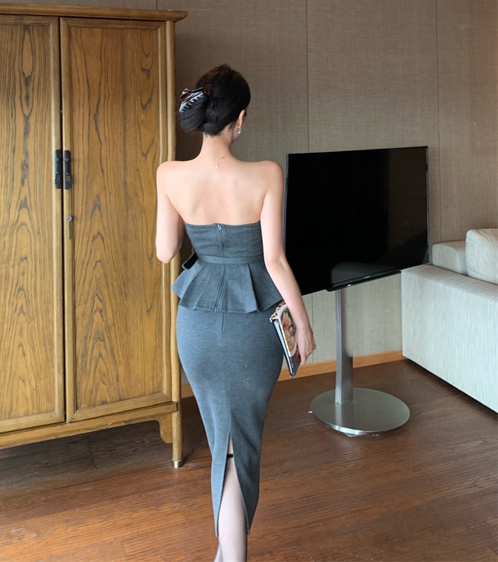 跨境性感時尚套裝2025秋冬新款平口上衣修身開衩+半身裙 數量